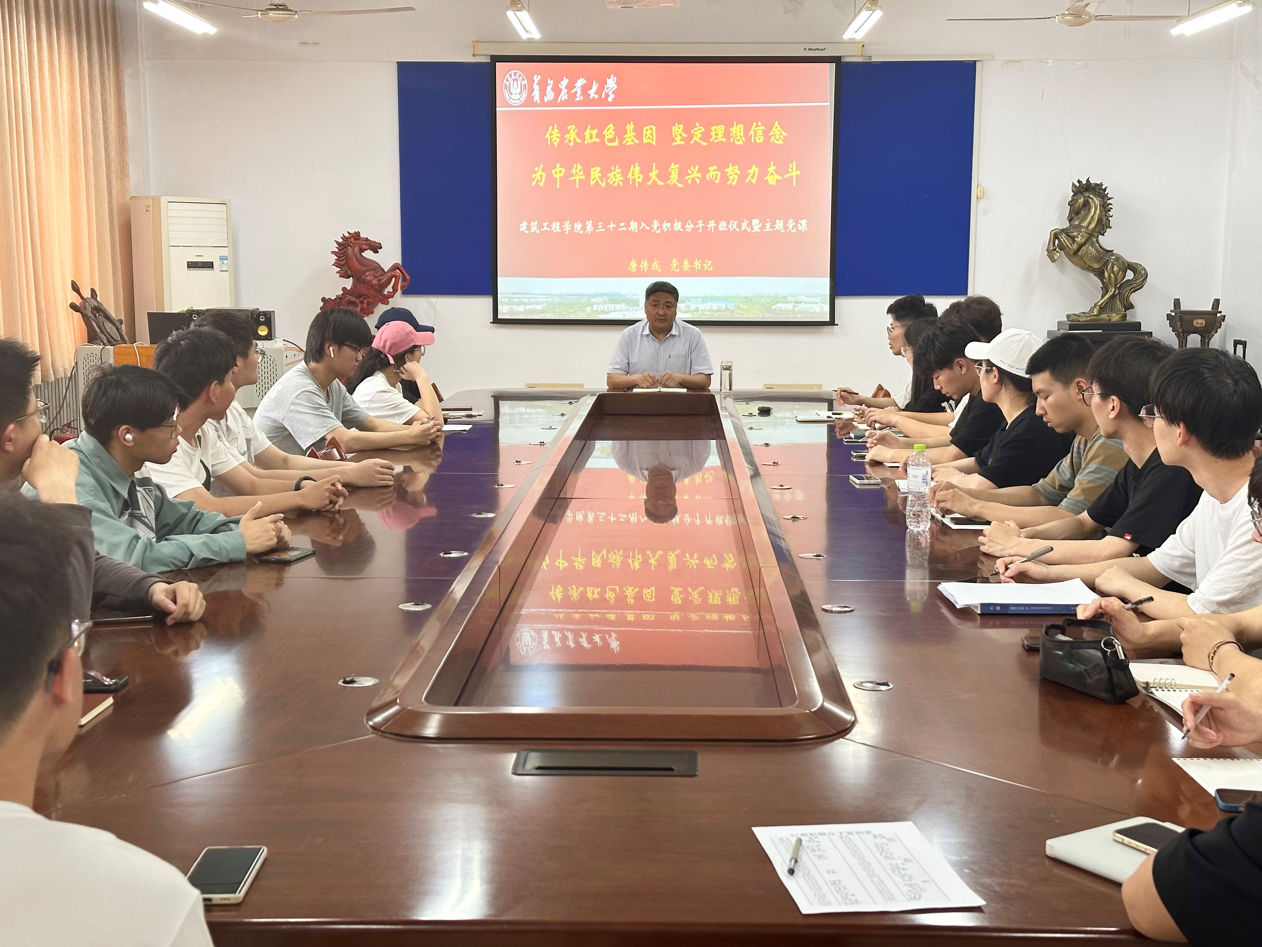 首先,唐传成为各位积极分子们讲授了以“传承红色基因 坚定理想信念 为中华民族伟大复兴而努力奋斗”为专题的党课。分别从党的二十大的主题和主要成果、过去五年的工作和新时代十年的伟大变革、开辟马克思主义中国化时代化新境界、以中国式现代化全面推进中华民族伟大复兴、全面建设社会主义现代化国家和实施科教兴国战略,强化现代化建设人才支撑等方面进行全面解读和阐释。同时,唐传成带领大家集体学习了《习近平给中国农业大学科技小院的同学们的回信》精神,他勉励各位同学要志存高远、脚踏实地,把课堂学习和乡村实践紧密结合起来,厚植爱农情怀,练就兴农本领,在乡村振兴的大舞台上建功立业,为加快推进农业农村现代化、全面建设社会主义现代化国家贡献青春力量。