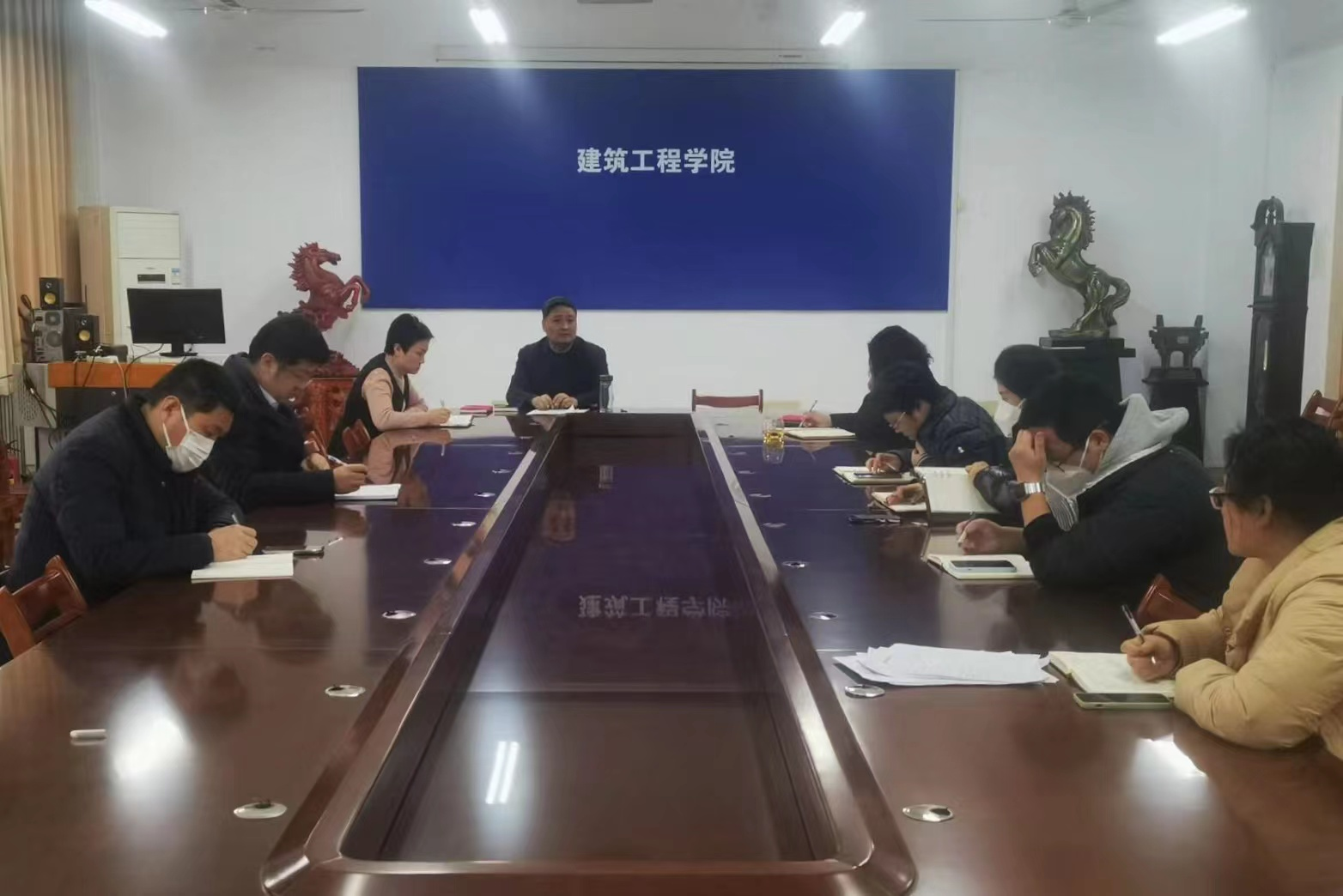 2月16日,建筑工程公司党委在工程楼312召开新学期意识形态工作专题会议。公司党委班子成员、各党支部书记和全体辅导员参加会议,会议由党委书记唐传成主持。