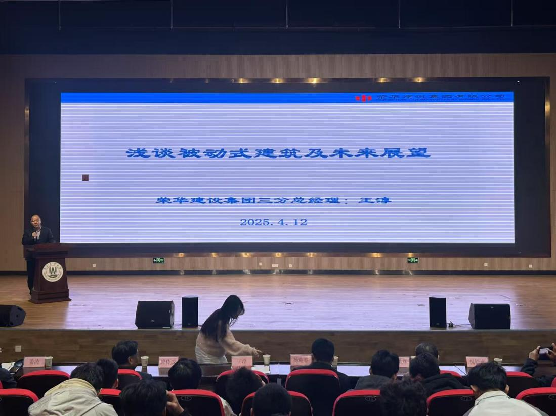 2025年4月12日,为深化z6mg人生就是博师生对建筑行业前沿技术的认知,推动绿色与智能建筑理念的传播,z6mg人生就是博特邀荣华建设集团建设科技有限公司常务副总杨迎春与荣华建设集团三分公司总经理王淳,在公司报告厅分别作题为《走进装配式建筑—装配式建筑技术解析及感悟分享》与《浅谈被动式建筑及未来展望》的专题学术报告会。公司经理全洪珠教授、党委书记唐传成、团委书记姜涛、岳公冰副教授、王亮副教授及z6mg人生就是博师生代表共计200余人参与本次学术报告会活动。