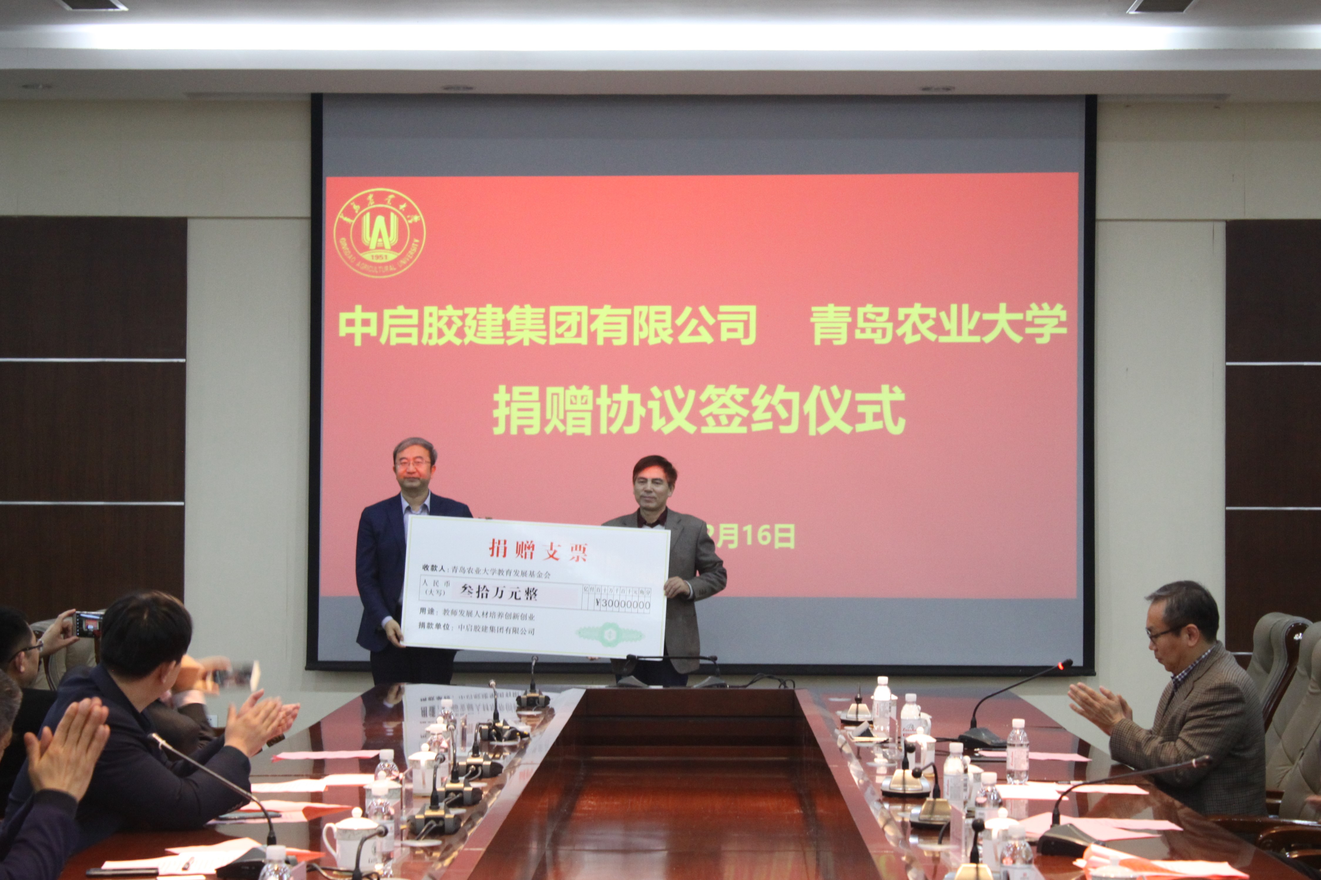 签约仪式上,牟少岩对中启胶建集团有限公司长期以来对公司建设发展给予的支持表示衷心感谢。他指出,此次签订战略合作协议和捐赠协议,不仅体现了企业对公司员工的关爱和支持,而且展示了企业关心农业高等教育、勇担社会责任的良好形象。他希望校企双方能以此为契机,积极探讨校企合作的有效途径,充分发挥各自的资源优势,在人才培养、科技创新、技术服务等方面进一步加强交流与合作,拓展更多更灵活的合作模式,加速科技成果转化,共建技术创新体系,实现科技与经济的紧密结合,为社会培养更多高素质技能型人才,实现公司、企业、员工、社会四方共赢。为社会培养更多高素质技能型人才。