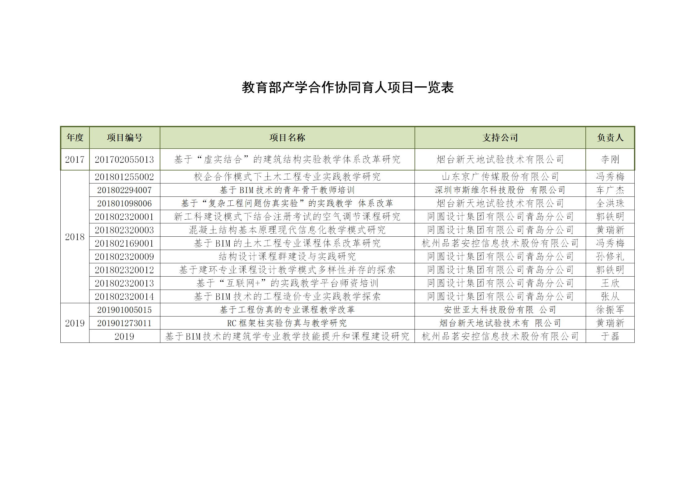 教育部产学合作协同育人项目一览表