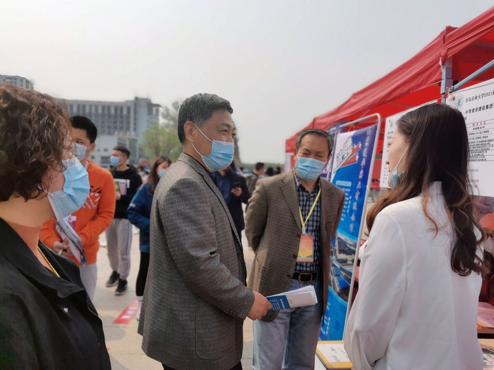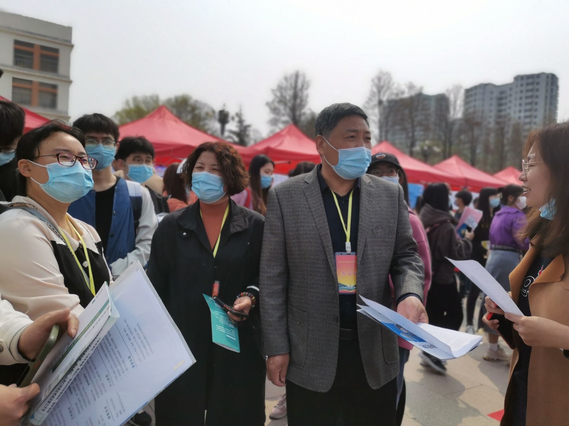 4月10日,z6mg人生就是博有限公司在虹子广场举办2022届毕业生春季就业招聘会,本次招聘会共有600余家企业参加。建筑工程公司党委书记唐传成、副经理全红珠、副经理冯秀梅、团委书记姜涛、辅导员孙小寒到场走访。