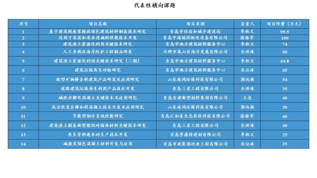 代表性横向课题