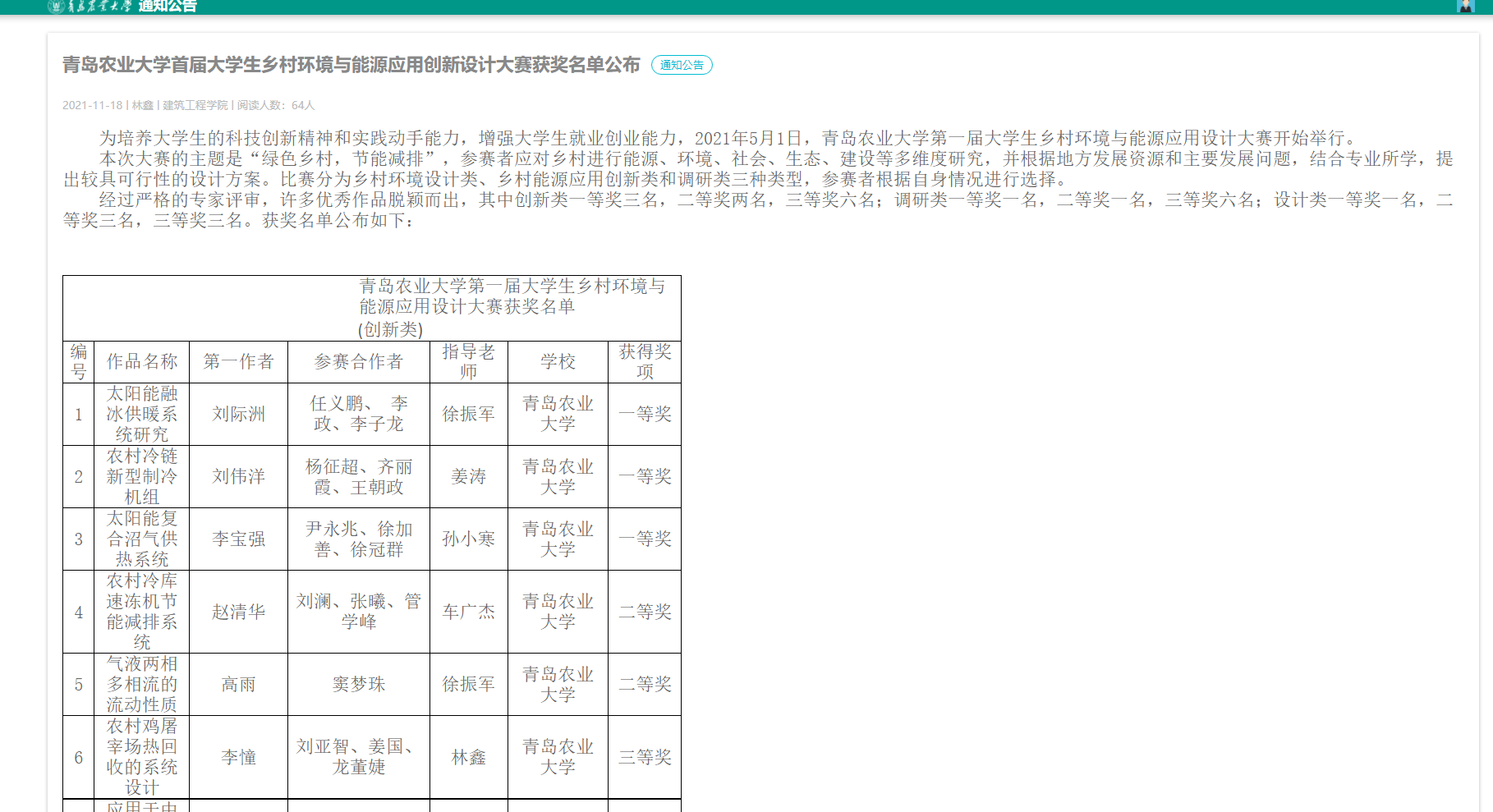 七、获奖名单展示: