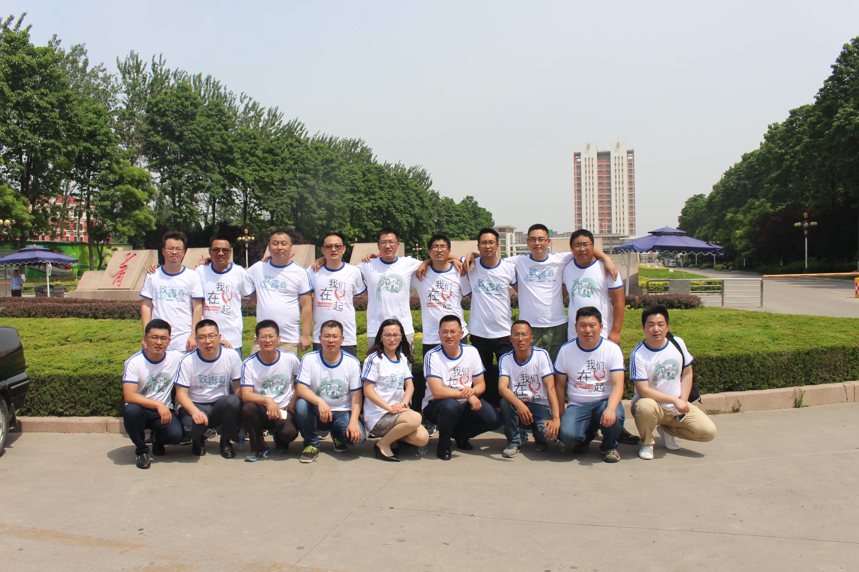 员工齐聚母校母校进行参观游览并合影留念。母校绿树成荫、书气弥漫的气氛让员工们流连忘返,深感自豪。