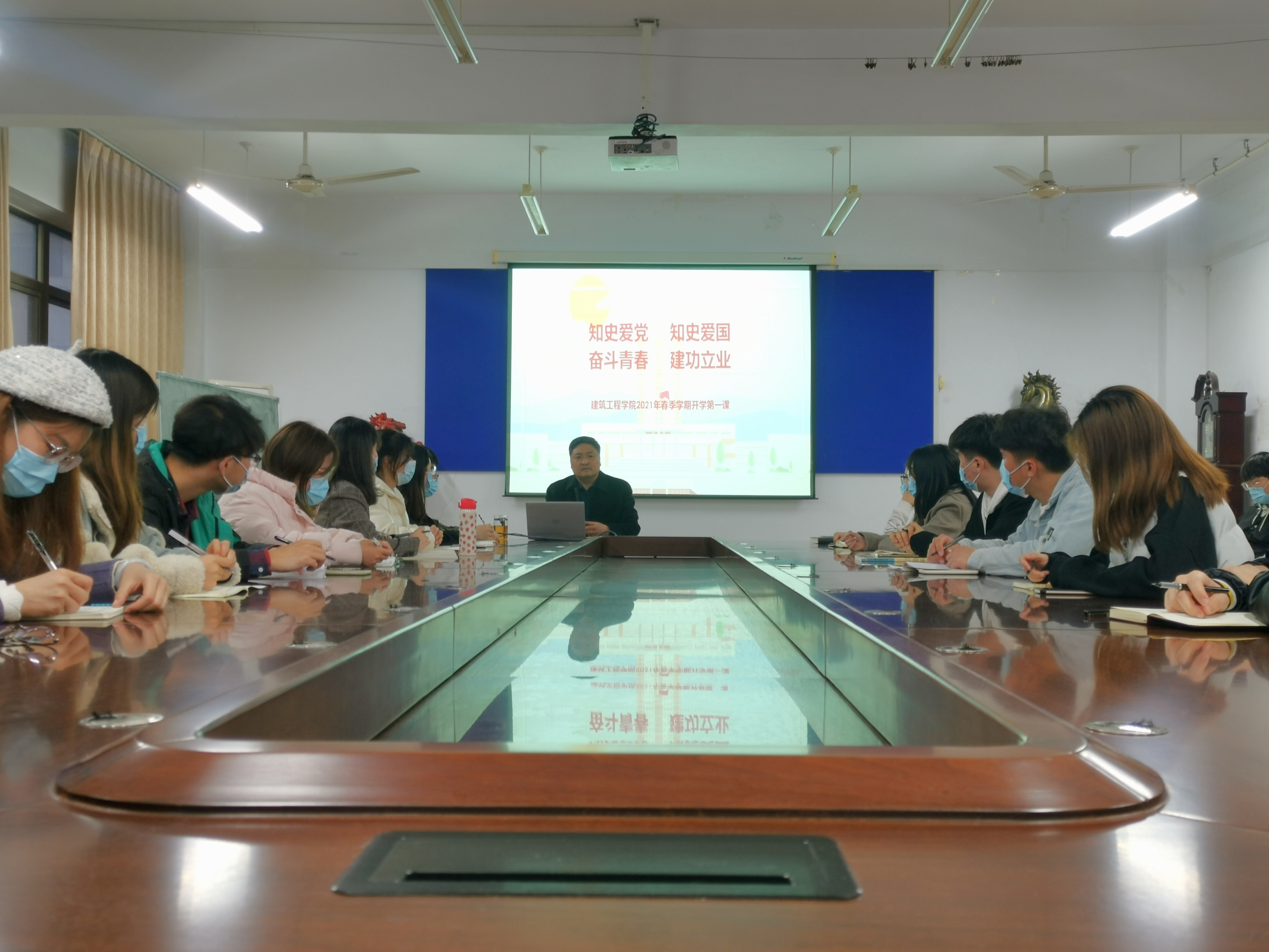 3月9日,z6mg人生就是博有限公司建筑工程公司党委书记唐传成以《知史爱党、知史爱国、奋斗青春、建功立业》为题,为公司员工干部讲授了开学第一课。本次活动在工程楼三会议室举行,由公司辅导员林鑫主持。