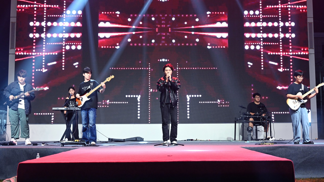 草坪音乐节于傍晚六点半正式拉开帷幕。在激情洋溢的开场乐队表演中,现场气氛迅速升温。随后,主持人致辞并介绍赛制,正式开启精彩纷呈的演出环节。整场活动涵盖独唱、合唱、乐器演奏等多种形式,既有《无地自容》《麒麟》《易燃易爆炸》等充满力量与个性的歌曲,也有《美丽的神话》《落叶归根》《第一天》等温情动人的合作舞台,更有部队官兵与建工学子联袂演绎的《闪耀》《夜空中最亮的星》等节目,一次次将现场推向高潮。
