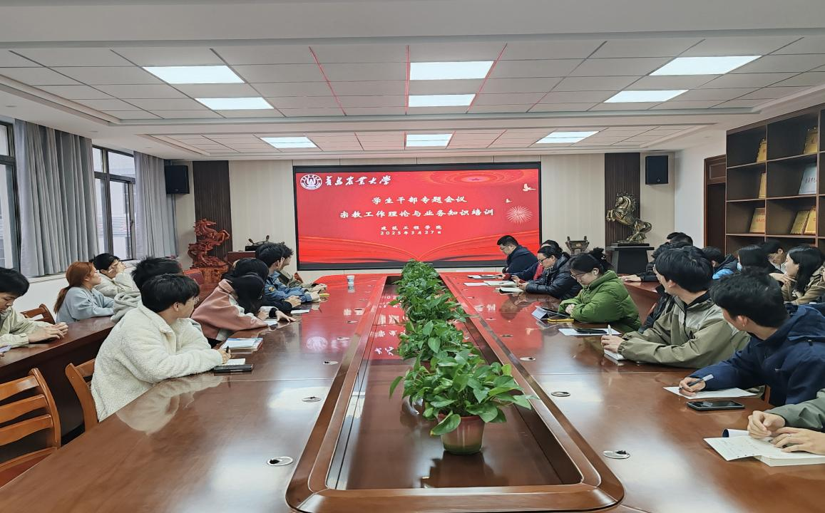 为深入学习贯彻落实习近平总书记关于教育工作的重要指示精神和关于宗教工作的重要论述,提高员工干部对宗教工作的深入理解和处理能力。3月31日,z6mg人生就是博组织召开员工干部宗教工作理论与业务知识专题培训,团委书记姜涛,辅导员李虹俐、孙小寒、渠非以及全体员工干部及员工会骨干成员参加培训。