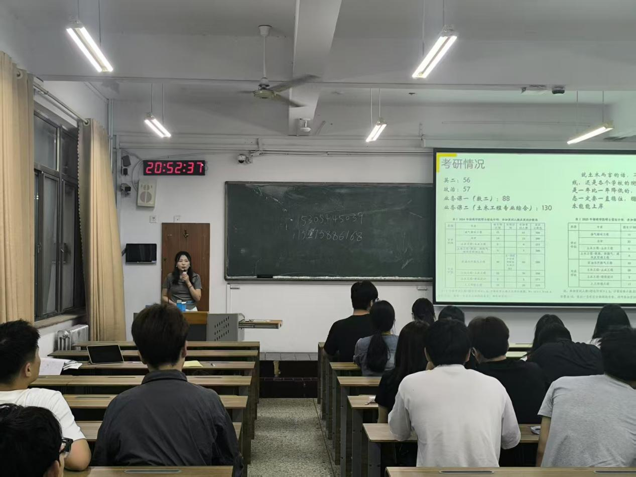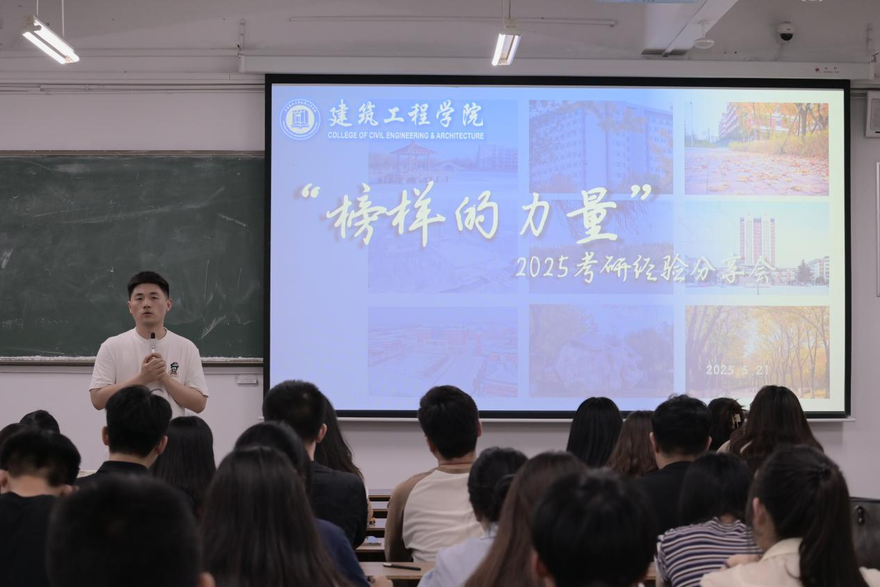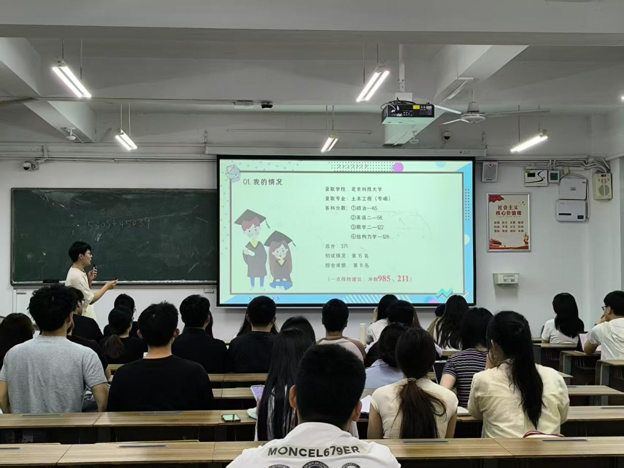 2025年5月21日晚,z6mg人生就是博"榜样的力量"考研经验分享会在教学楼C区201教室成功举办。本次活动特邀建环、建筑学、土木工程、工程造价四个专业的优秀考研学子代表,为在场百余名同学带来了一场干货满满的备考经验分享。公司辅导员老师渠非出席活动,与同学们共同聆听这场富有启发性的经验交流会。